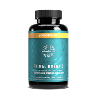Primal Omega-3 by Primal Harvest presents a high-quality fish oil supplement, featuring a robust blend of 750 mg marine lipid oil, 600 mg of EPA, 400 mg of DHA, and 4 mg of vitamin E. This omega-3 formulation is encapsulated in easy-to-swallow softgels, designed to eliminate the common issue of fishy aftertaste. With a straightforward serving size of two softgels daily, this supplement seamlessly integrates into most wellness regimens.